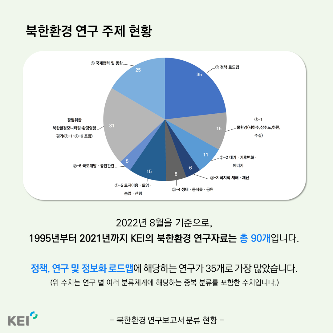 북한환경 인포그래픽 (북한환경 연구보고서 분류 현황, 1995~2021)